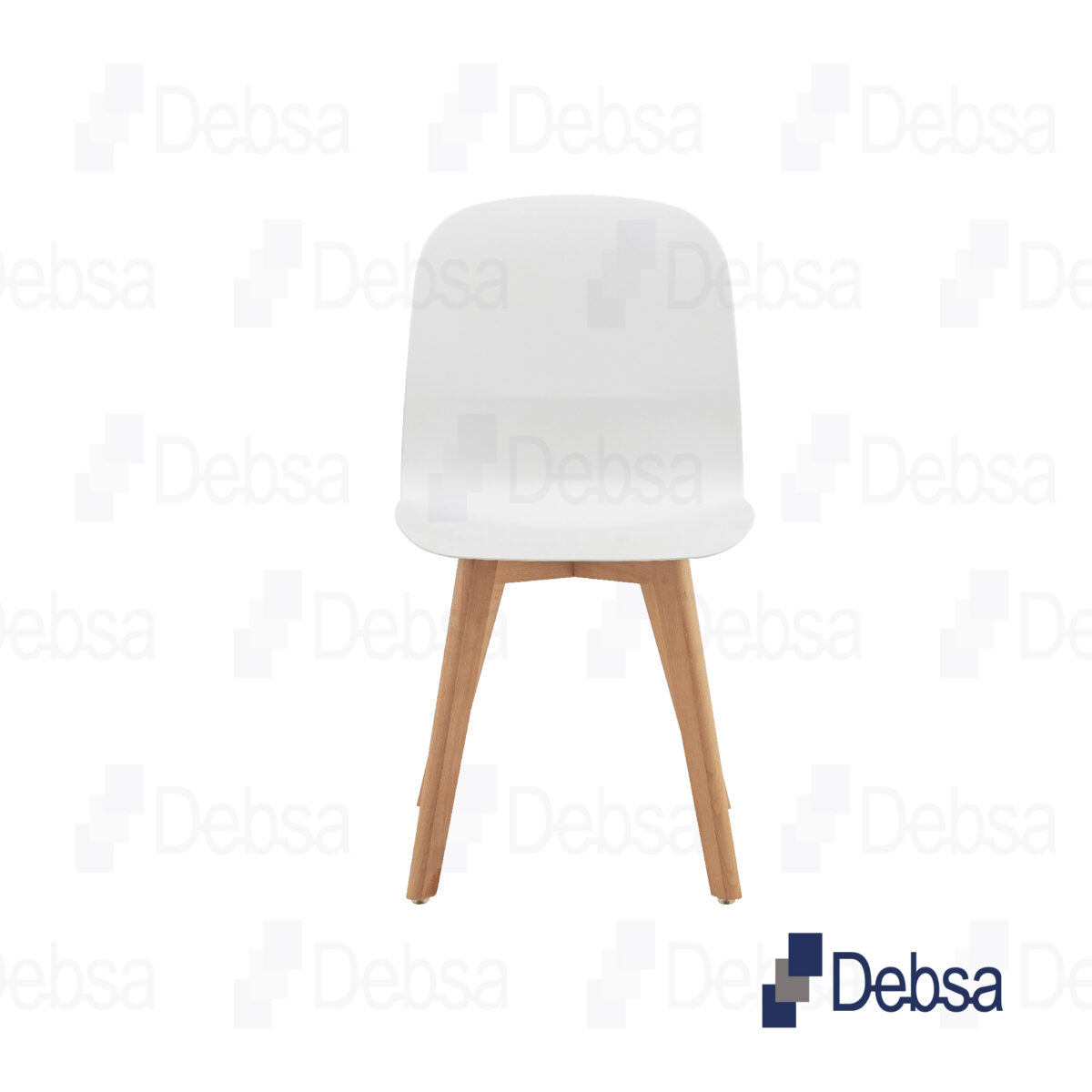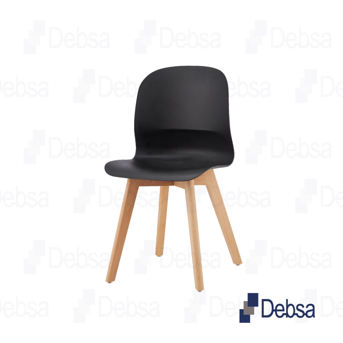 Silla 100% Polipropileno (PP), moldeada totalmente en un solo cuerpo. Patas de madera color Hay. Fabricación perfecta que le da confort y elegancia a la silla. Uso tanto exterior como interior.